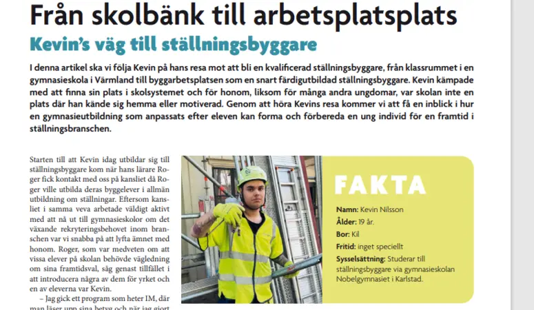 “Jag vill bli ställningsbyggare!” Kevin Nilsson från Kil har hittat sitt drömyrke på BERGNÄSET i Karlstad. Från att ha varit lite skoltrött och osäker…