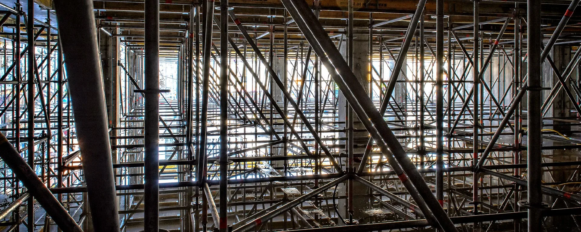 I anläggnings-, infrastruktur- och stora byggprojekt använder vi oss av stämpställningar och formställningar med förstärkta stålrör och fasta diagonalstag. Formställningens högre hållfasthet krävs för att stabilisera byggnadskonstruktioner samt möjliggöra armering, gjutning och formbygge av stommar, valv, brokonstruktioner och andra bärande delar. Formställningarna tål exceptionell belastning och byggs därför färdiga på marken innan de lyfts på plats med kran. För ytterligare säkerhet har ställningarna också integrerade fallskyddsräcken.